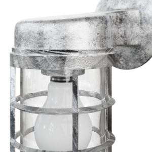 An industrial style bulk head wall light in Painted Silver