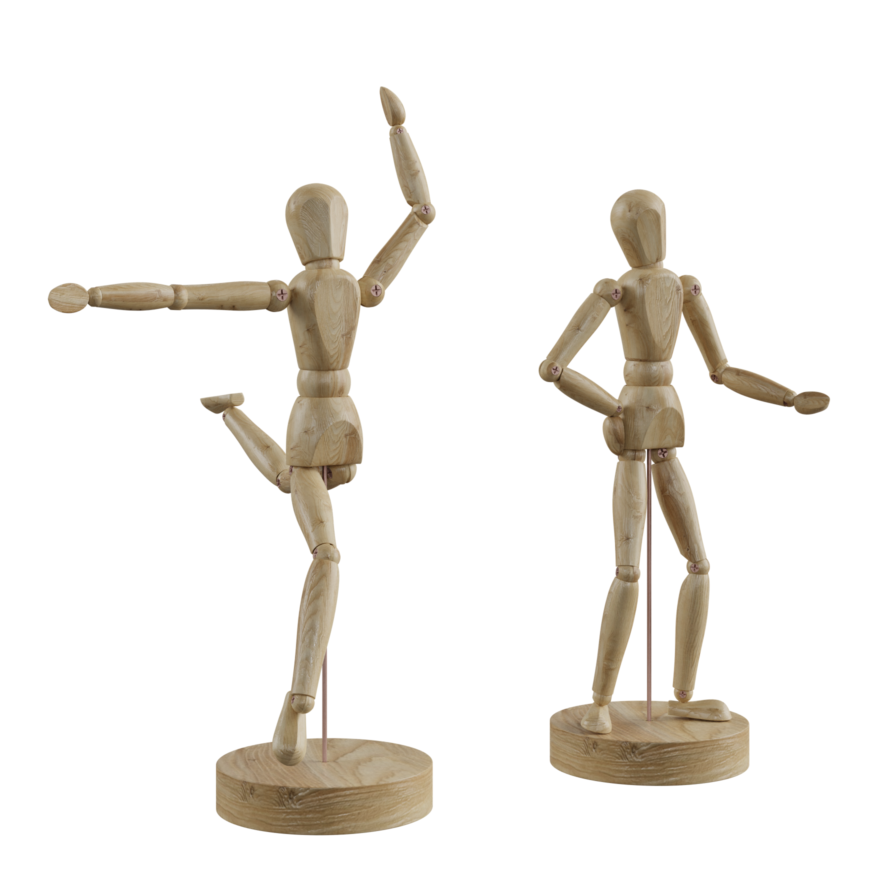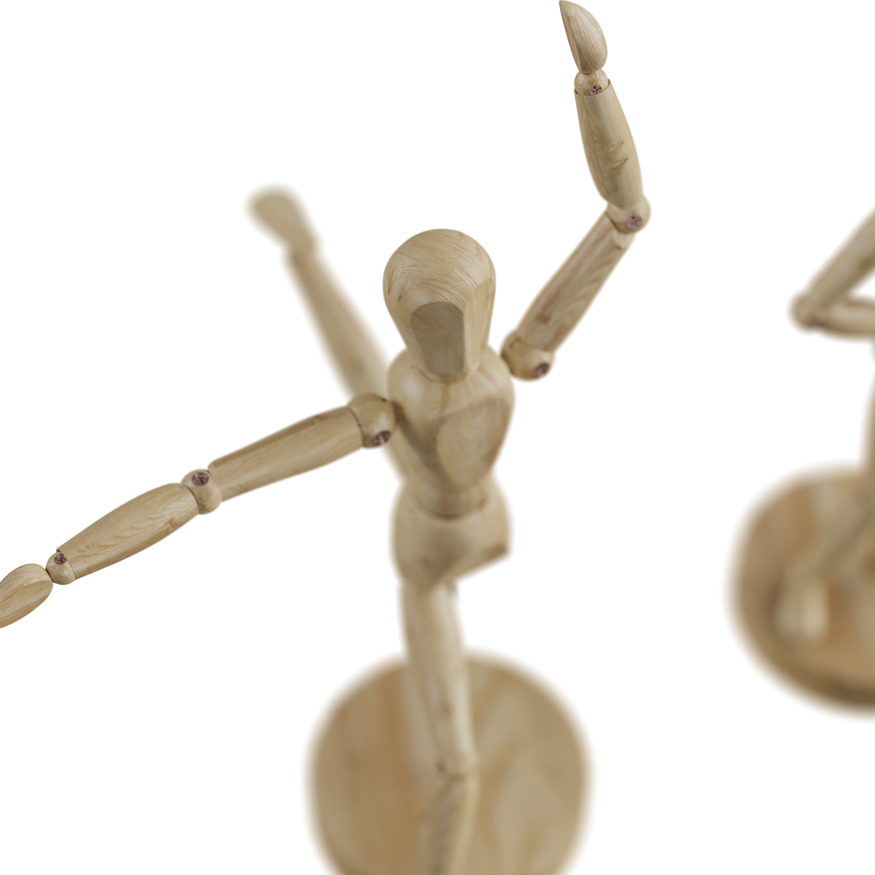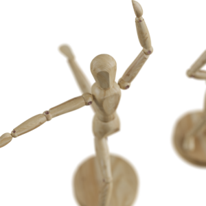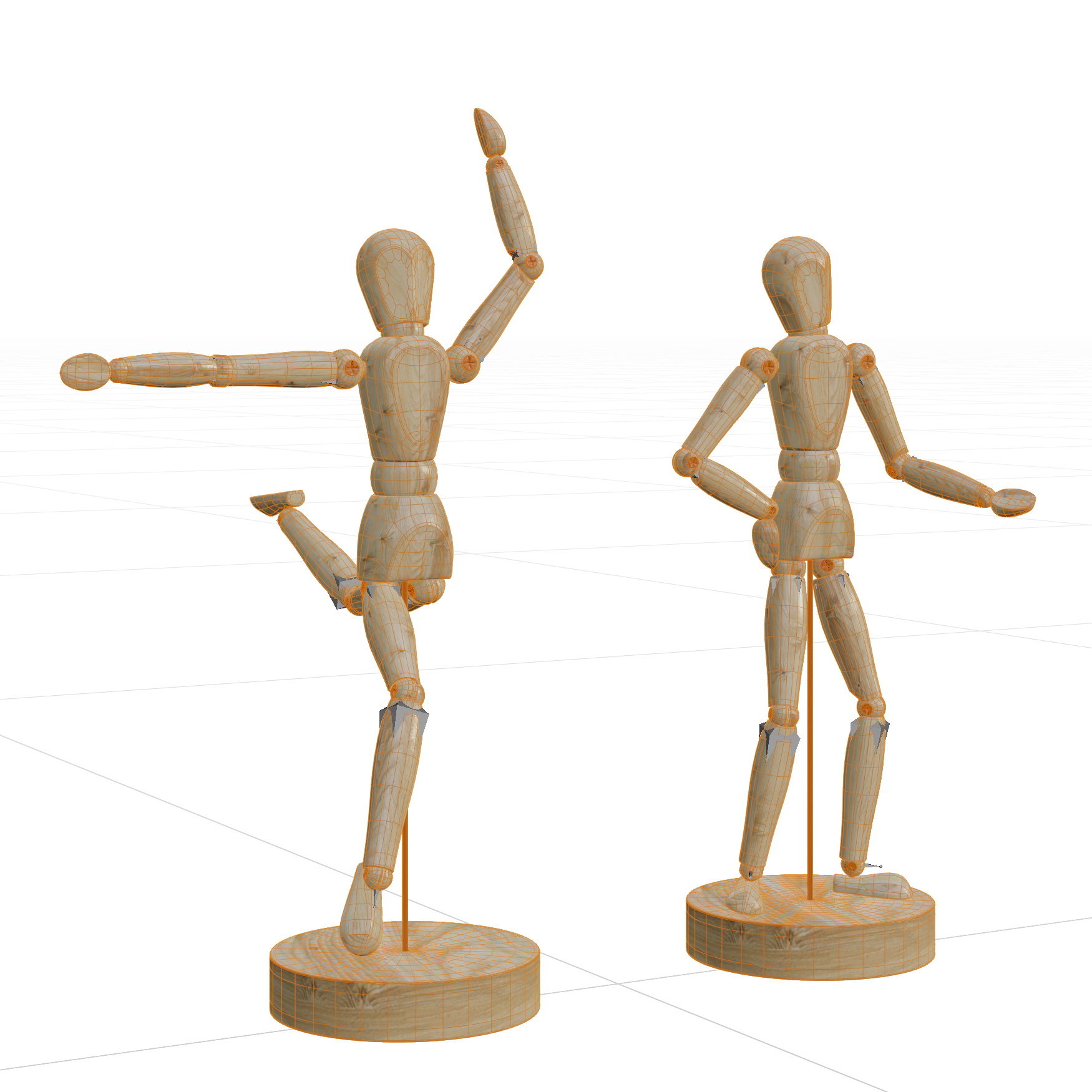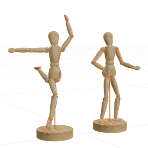 A Wooden Man Mannequin. This model has bones which you can use to rotate and put the figure into whichever position you like. Just click on a bone and gone into Pose Mode.
