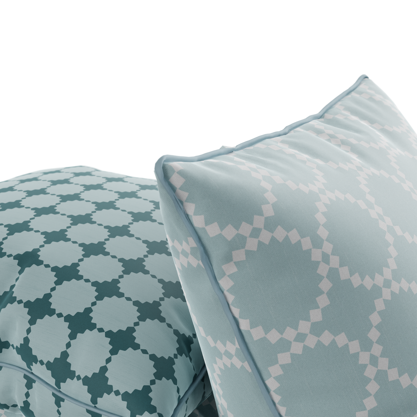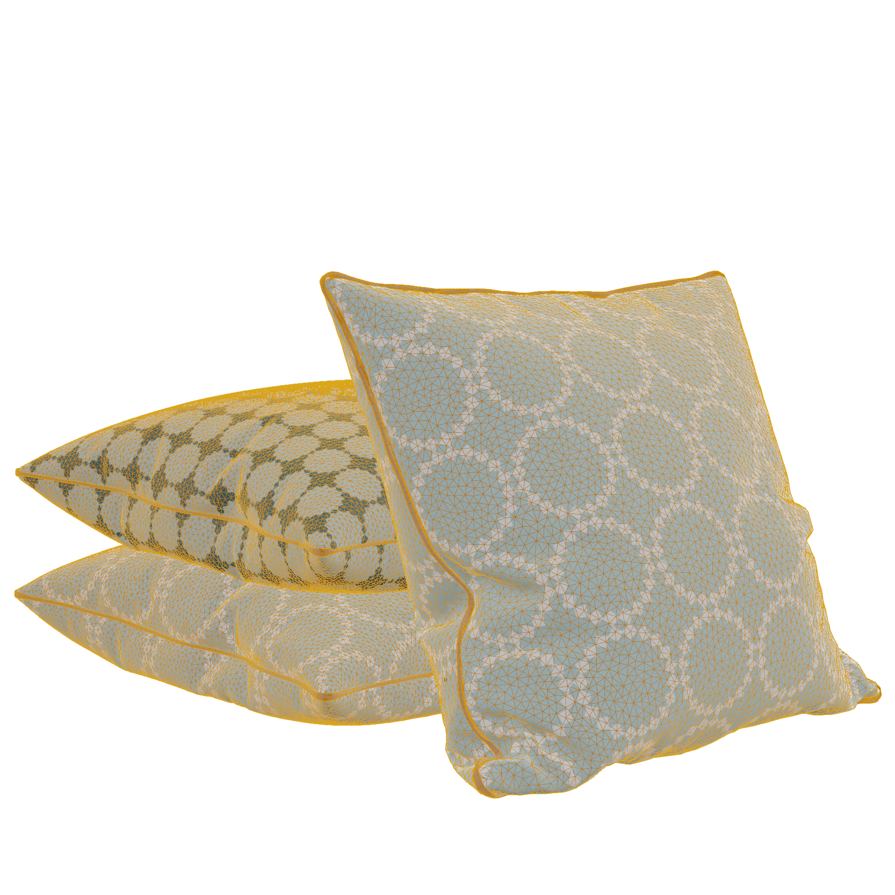 1. A 3D model of a teal cushion pile
